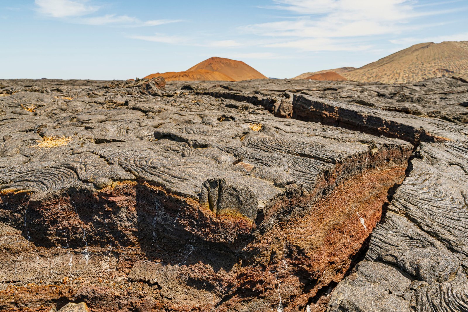 In the afternoon, the tour continues to nearby Santiago Island, where a short walk will take you to an impressive lava field. The striking contrast between the black volcanic rock and the surrounding landscape is a powerful reminder of the islands’ raw geologic forces.